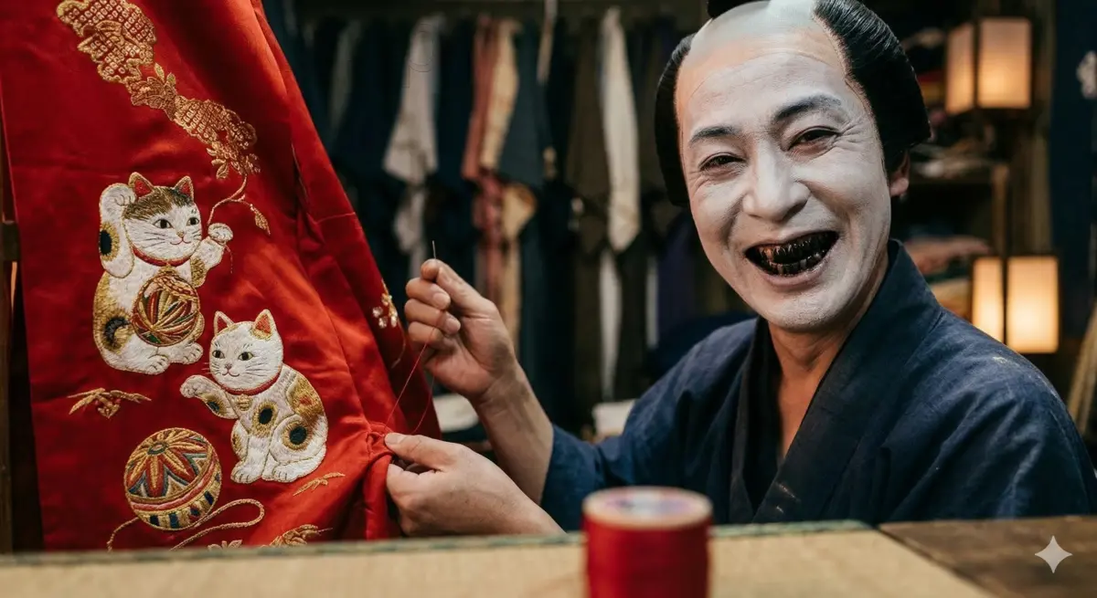 仇討ちシーンでは、伊納菊之助が女装して、敵(かたき)に対して女性と思わせて不意討ちする流れだったにゃ。