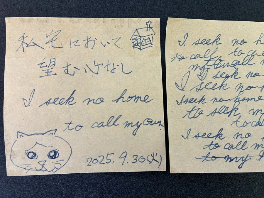 今朝、受け継ぐ言葉は「私宅において望む心なし」だにゃ。