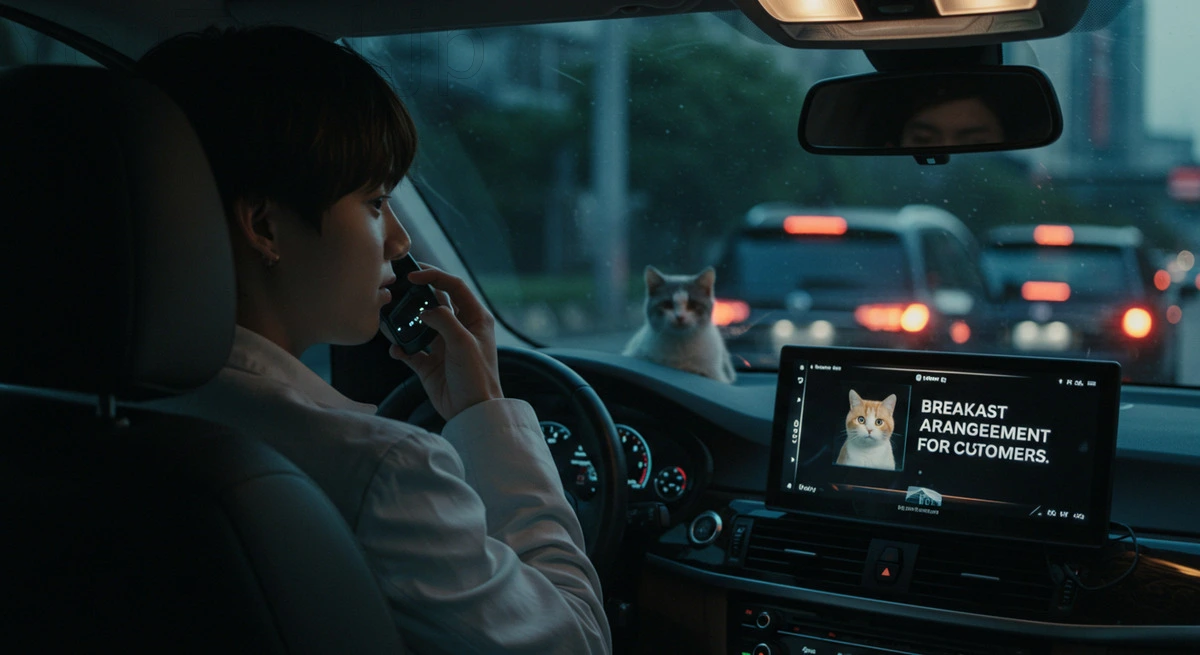 客が騒いでる?こちとら渋滞でヒヤヒヤにゃ、血糖値あげて落ち着かせなきゃ