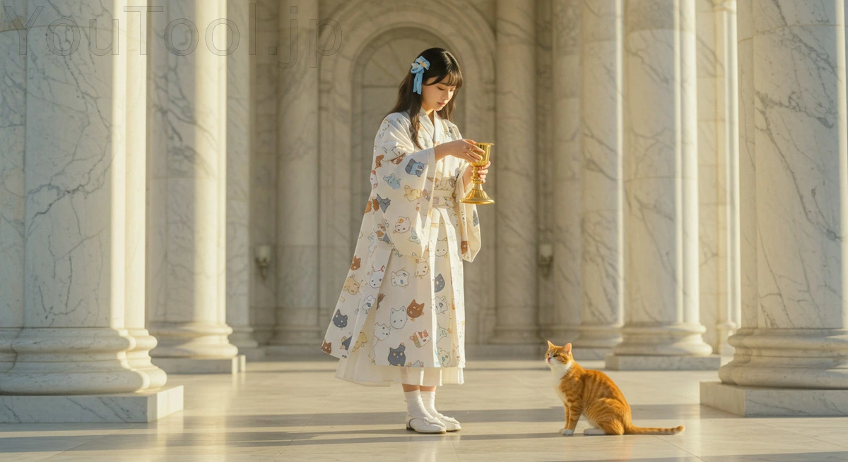 ひと文字ひと文字は金の聖杯から注がれる聖水の一滴にゃ。